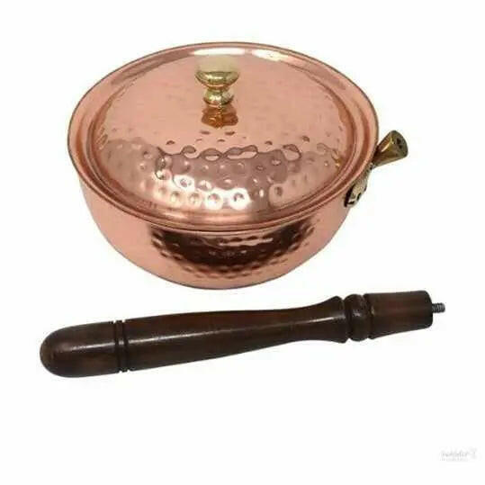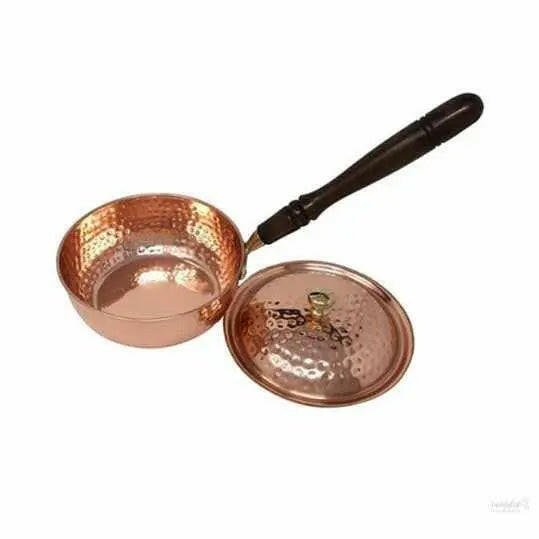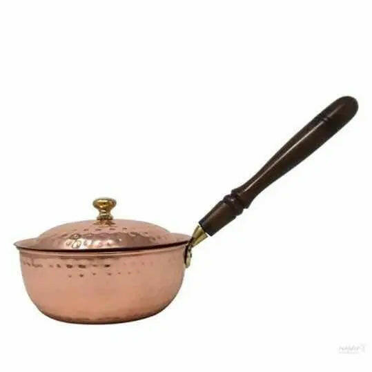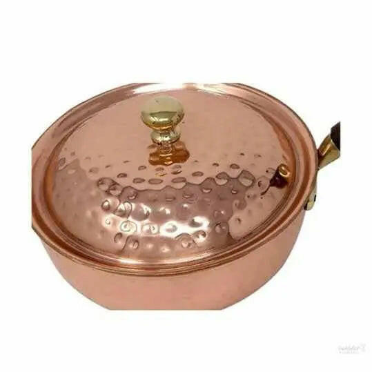 Copper Cookware Pot with Wooden Handles with Lid Kitchen Utensil Hand Hammered