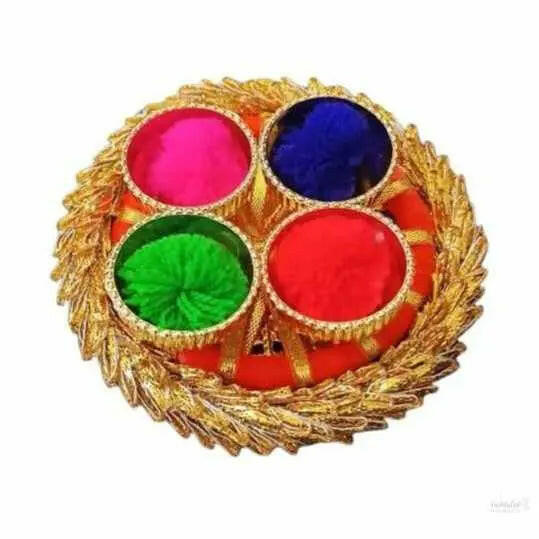 Laddu Gopal Designer Thali 4 Color Bowl With Bagel Holi Combo Set for Laddu Gopal