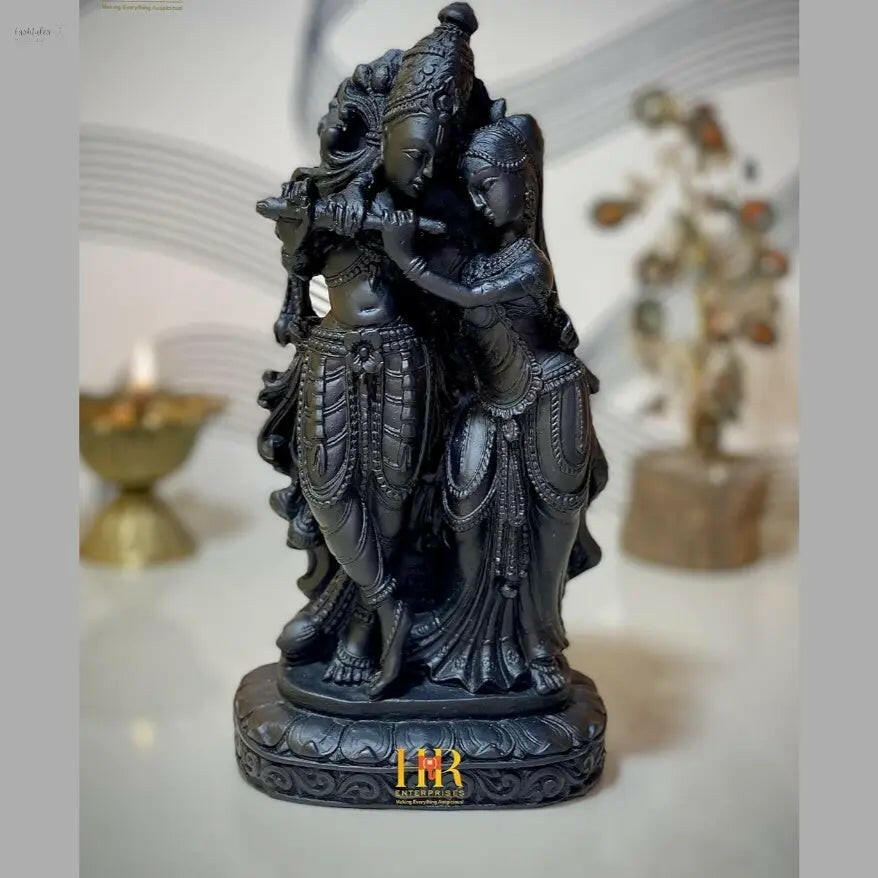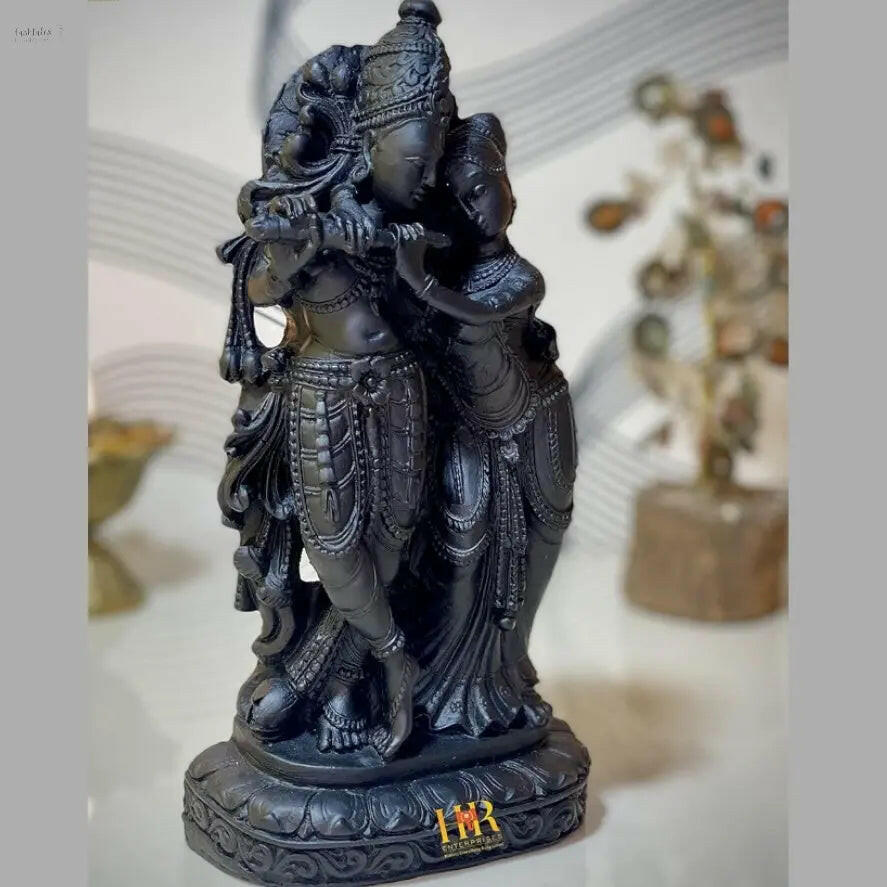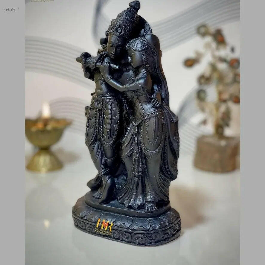 Black Marble Resin Radha Krishna Statue - Modern Divine Art