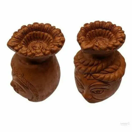 TerraCotta Raja Rani Face Art Diya For Diwali / Pooja Celabration