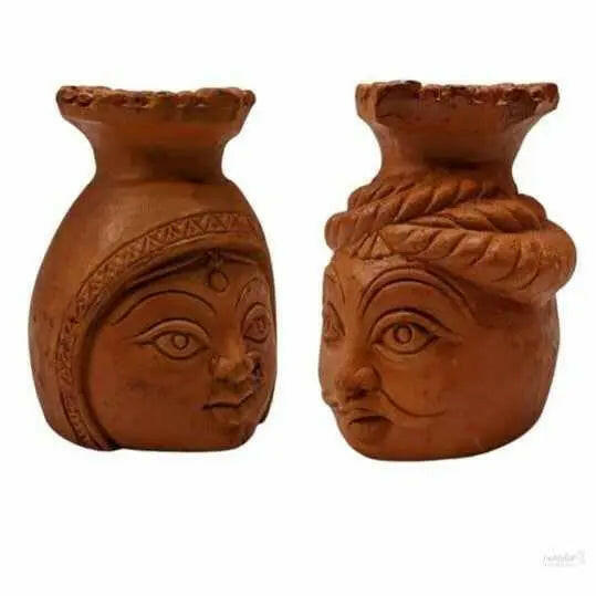 TerraCotta Raja Rani Face Art Diya – Timeless Charm and Regal Beauty