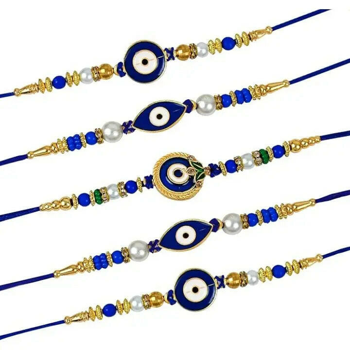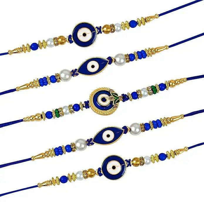 Rakhi for Brother - Evil Eye Rakhi Pack of 5 for Brother Bhaiya Bhabhi Kids Men Boys Bhai with Card and Tikka - Rakhi for Rakshabandhan